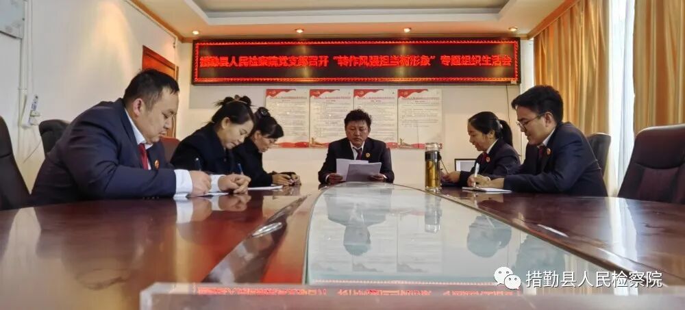 为深入学习贯彻党的二十大精神,严格落实党内组织生活制度,进一步提升党组织凝聚力和战斗力,3月22日上午,院党支部召开“转作风强担当树形象”专题组织生活会。会议由院党支部书记强巴格桑主持,全体在家党员干警参加。