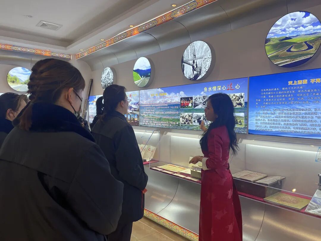 在“两路”精神纪念馆,全体检察干警通过听取讲解员介绍、集中观看《修筑川藏青藏公路史料片》《两路精神永放光芒》《墨脱公路宣传片》,看到了以18军为代表的军人和西藏人民组成的11万藏汉筑路大军,在平均海拔超过4000米的“世界屋脊”,运用最简易的修路、测量工具,以无比强大和坚定的内心,历时五年时间,建成总长4360公里的川藏、青藏公路。一件件珍贵的文史资料、生动的图片和视频,全方位、全过程、全景式展现了老一辈军民修筑川藏、青藏铁路的英雄历史。