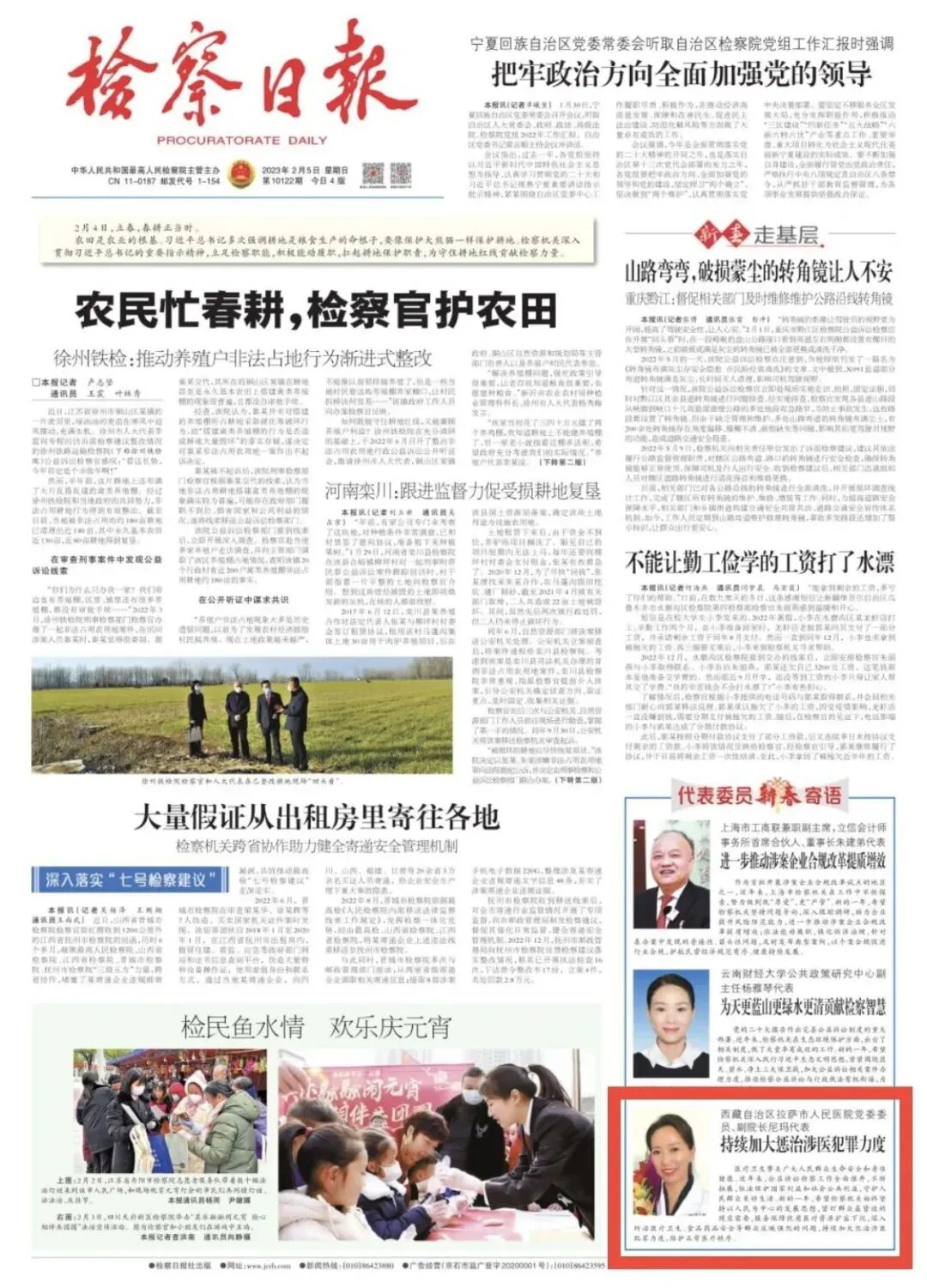 医疗卫生事关广大人民群众生命安全和身体健康。近年来,公益诉讼检察工作全面推开,不断拓展,依法保护国家利益和社会公共利益,守护人民群众美好生活。新的一年,希望检察机关始终坚持以人民为中心的发展思想,紧盯群众最紧迫的现实需要,服务保障优质医疗资源扩容下沉,深入纠治医疗卫生、食品药品安全等群众反映强烈的问题,持续加大惩治涉医犯罪力度,维护正常医疗秩序。