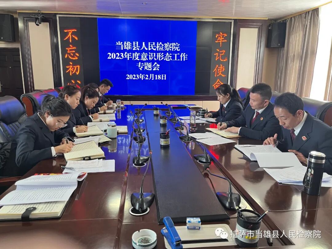 会议传达学习了上级院关于进一步落实意识形态工作责任制,防范化解意识形态风险隐患相关文件精神,讨论制定了《当雄县人民检察院意识形态工作方案》,研判分析了当前意识形态工作面临的新形势新问题,并做出相关安排部署。