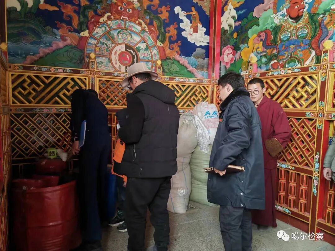 此次活动重点就行政执法部门对《阿里地区安全生产隐患排查整治情况日报》中提出问题的整改,特别是对辖区内涉民爆单位仓储、消防、值班、巡逻安全等监督管理责任落实情况进行跟踪问效,并就其履行对顿久寺、古如江寺、芝达布日寺等寺庙主殿、燃灯房、厨房、僧舍房屋安全、消防设备配备运行、用火用电隐患排查、登记台账及各项应急预案设立等监管职责情况进行全面检察监督,针对发现的隐患问题现场提出督促整改意见。
