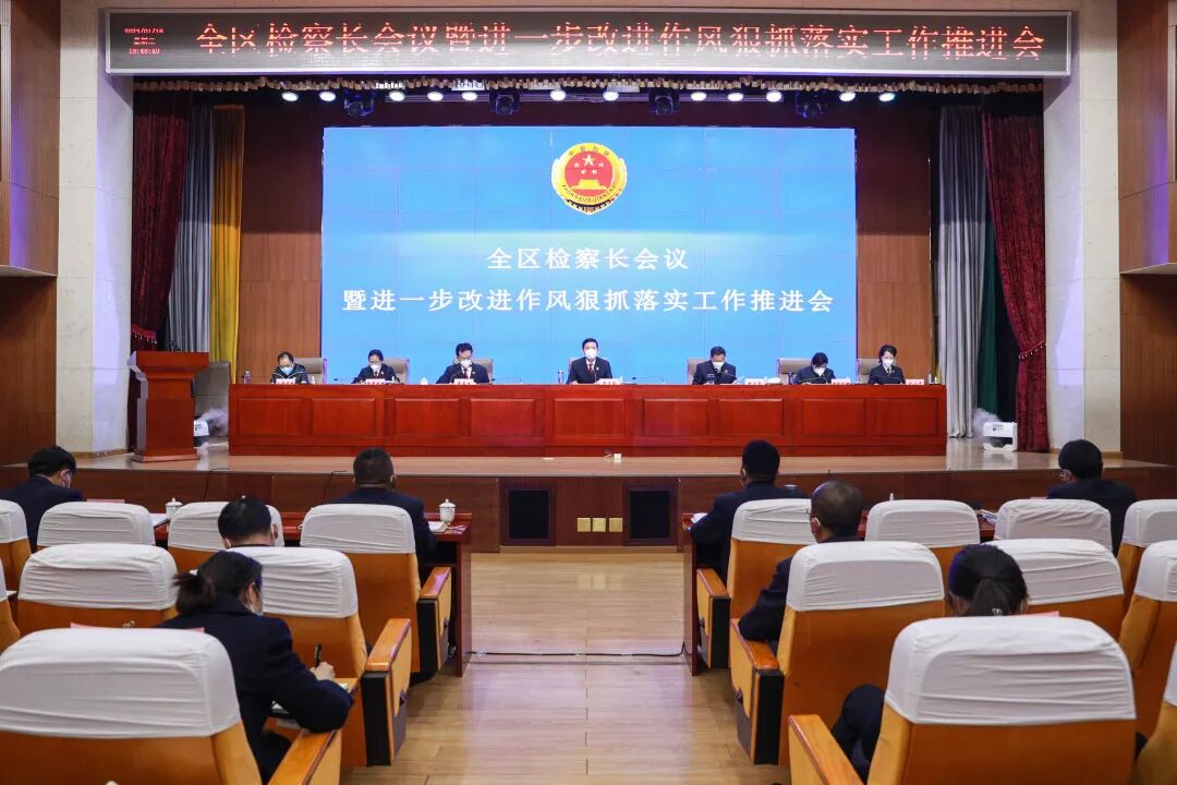 会议以视频形式开至市级检察院。自治区检察院党组成员、副检察长陈宏东主持会议,区检院领导、检察委员会专职委员和各市分院检察长在区检院主会场参加会议。